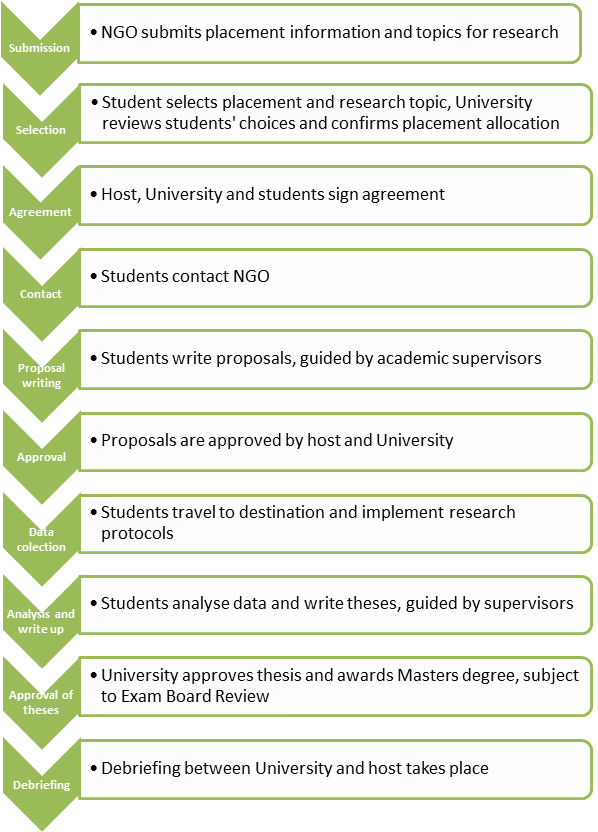 Figure 1: Process for the placement of Masters students from the Department of Geography at The University of Sheffield, UK